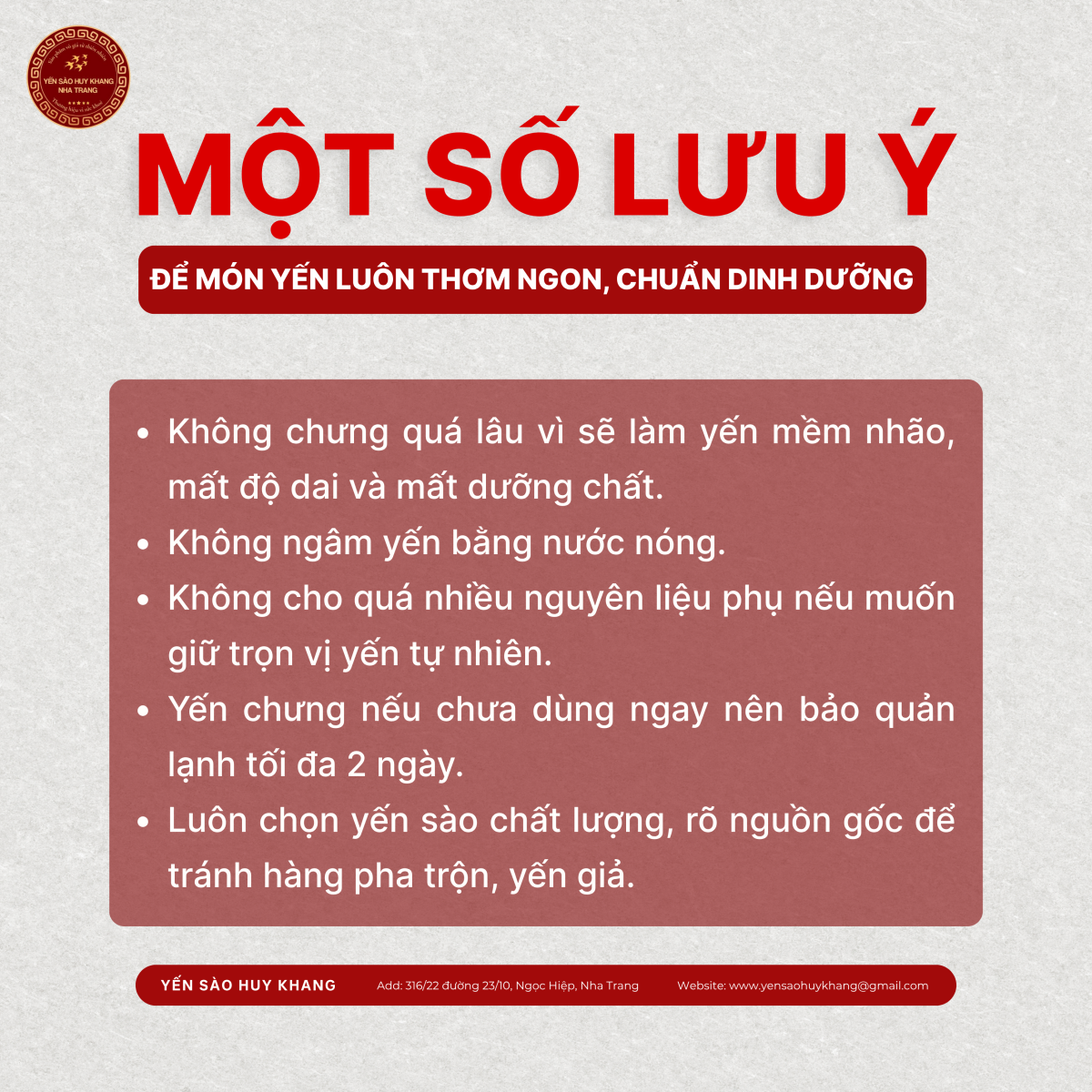 5. Một số lưu ý để món yến luôn thơm ngon, chuẩn dinh dưỡng