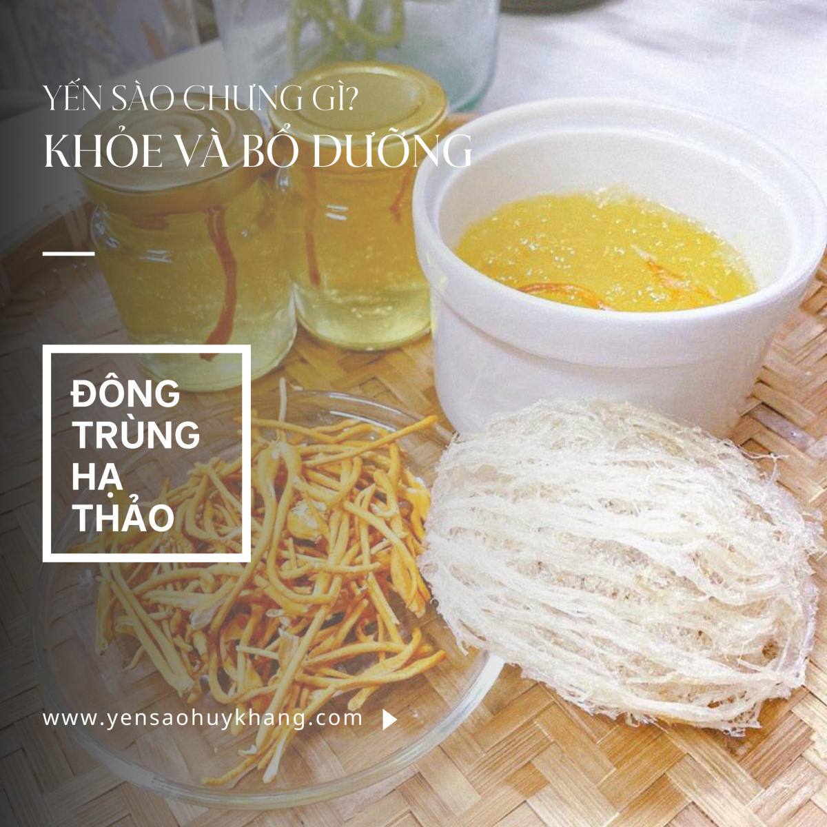 - Yến chưng Đông Trùng Hạ Thảo cũng rất giàu các vitamin, khoáng chất, axit amin và hoạt chất thiết yếu, giúp cơ thể khỏe mạnh và hạn chế suy nhược. Sản phẩm này cũng giúp tăng cường năng lượng cho cơ thể, hỗ trợ tái tạo tế bào và tăng cường sức mạnh các mô cơ.
